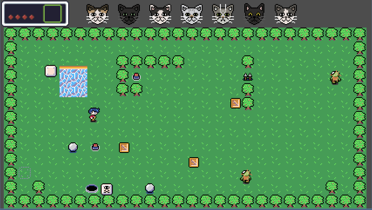 Unfortunately due to Life this is still a very early WIP without much of a goal -- sorry, will try to flesh it out in the coming weeks! The concept is something similar to Goof Troop for the Super Nintendo, with a goal to collect a present for each cat.